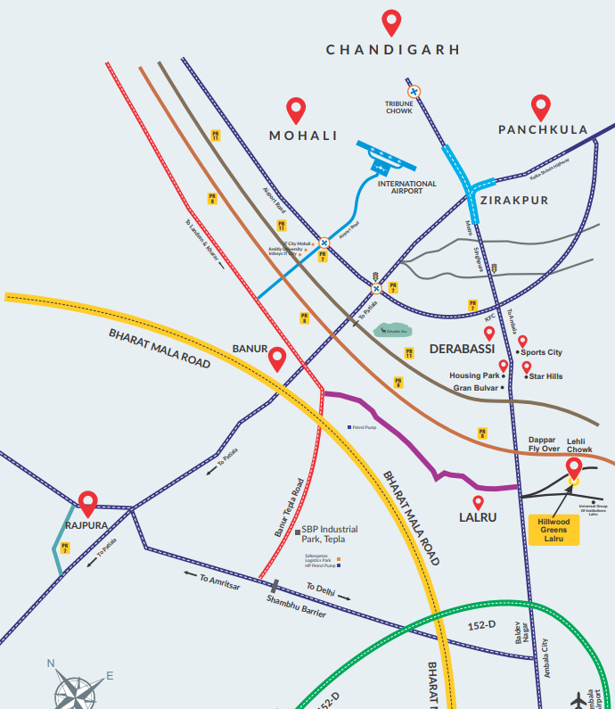 Located on the Chandigarh–Ambala Highway, Hillwood Greens offers residential plots in 100, 125 & 150 sq. yd sizes. Developed by SBP Group, this township is designed for those who value connectivity, nature, and long-term returns.